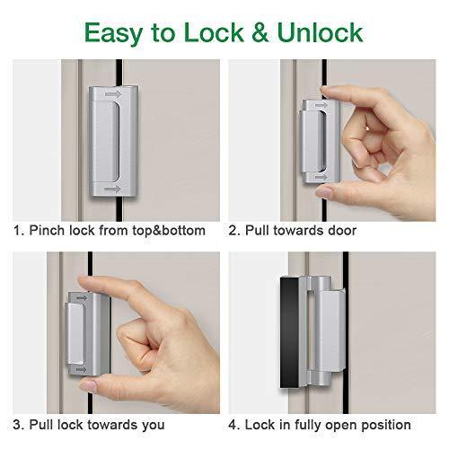 🚪UPGRADED EASY OPEN DESIGN - Groove Design for Easy Opening in Emergency.Place index finger on top of Winonly door lock and thumb on bottom and slide lock away from the base plate along the door in the direction of the hinges then pull outward. No tools required to open, just a little practice. Not only prevent breaking in but also easy to open in case of emergency.