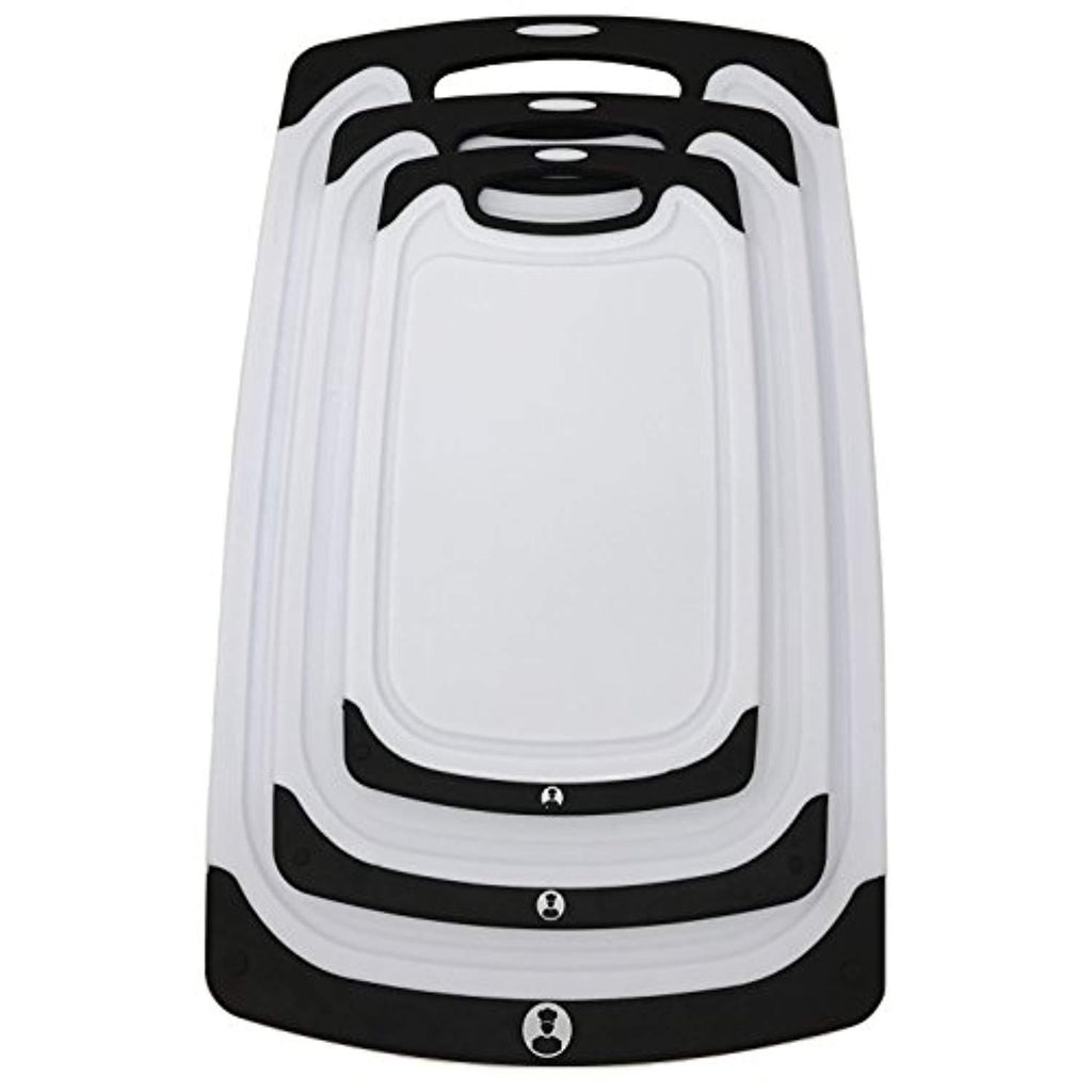 Chef Splendid 3-Piece Non-Slip Plastic Cutting Board Set, Drip Juice Groove, Dishwasher Safe, BPA Free, FDA Approved