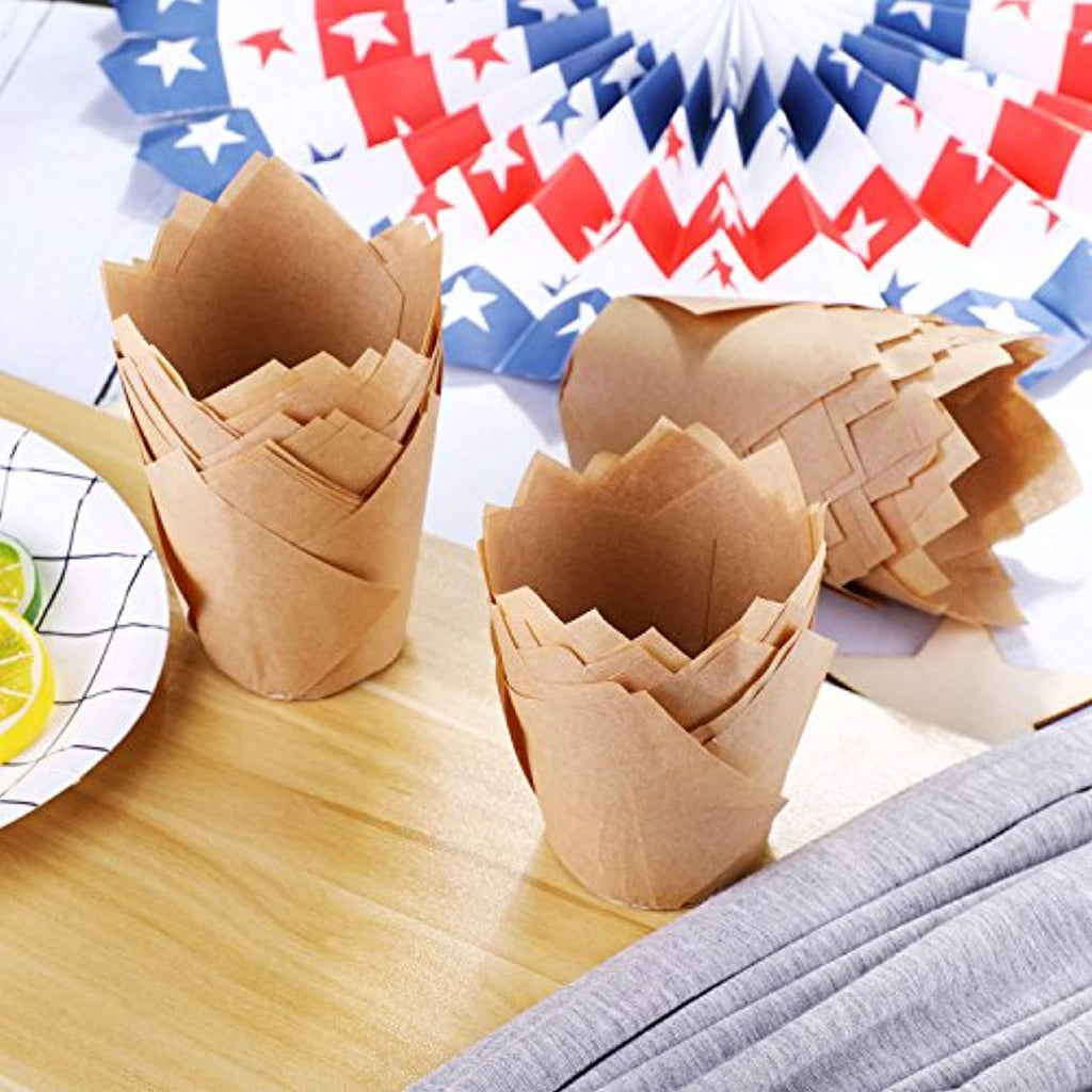 Hestya 150 Pieces Tulip Muffin Baking Cups Cupcake Muffin Liners Baking Cup Holder, Natural Color