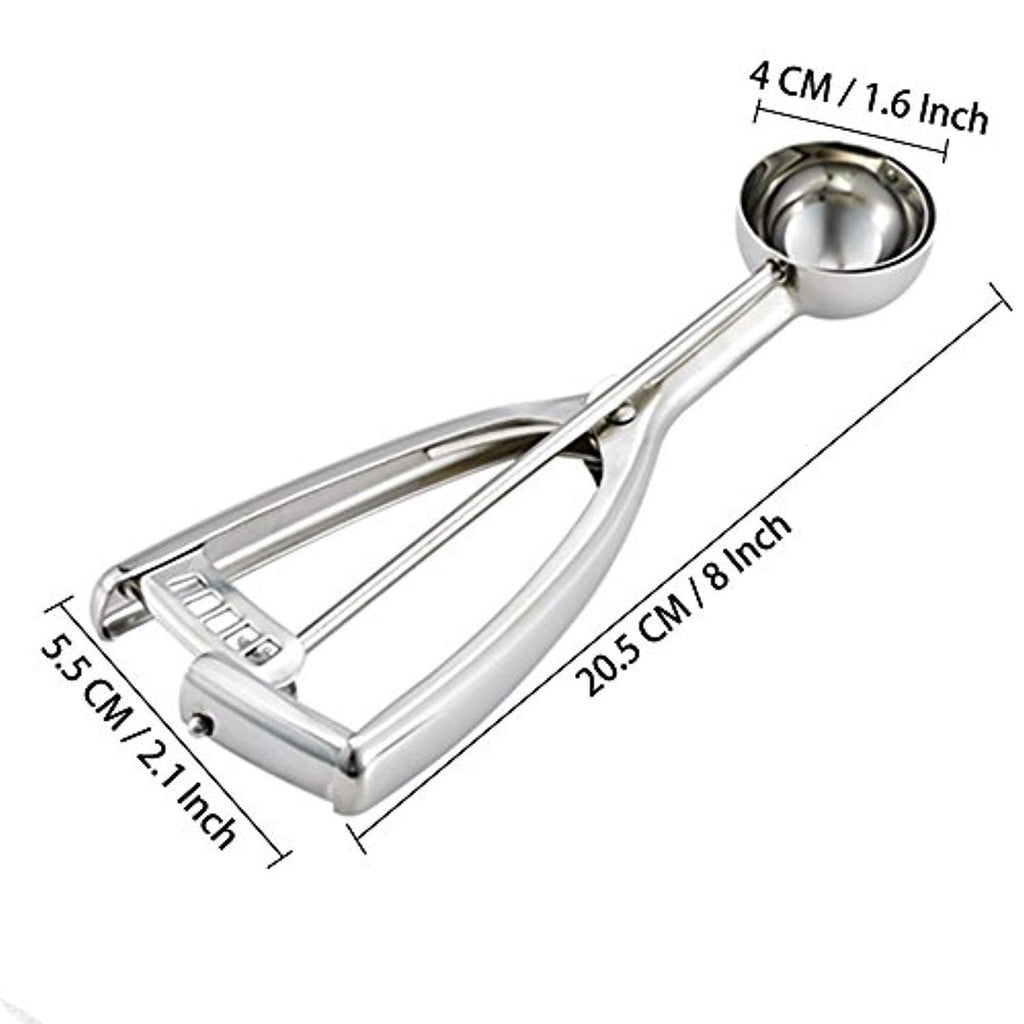 HIGH QUALITY, SELECTED 18/8 STAINLESS - The small cookie scoop with trigger have gleaming surface, is made of food grade 18/8 stainless steel. We would be confident of strength, durability and food safety. These superior scoops never contain harmful chemicals or others to leave into your food.