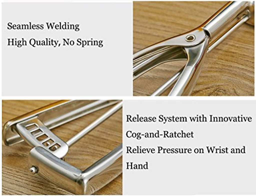 WITH ERGONOMIC TRIGGER, EASY TO USE - Due to the newly designed release system with innovative cog-and-ratchet, H-Min small cookie scoop would perfectly relieve pressure on your wrist and hand when you use it. With thoughtfully designed handles and ergonomic release system (no spring), we would use the cookie scoop small easily and gently squeeze to release and don't require intense effort or tireless hand strength.