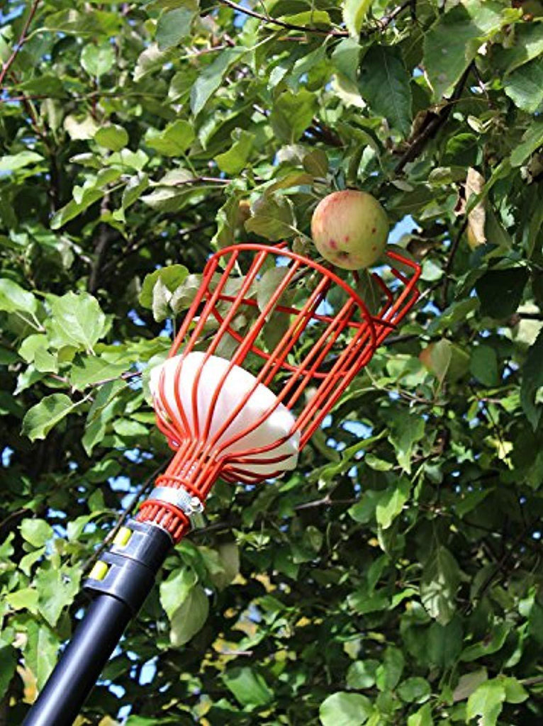 EASY TO USE: Harvest tree fruits safely with the 7Penn Apple Picking Fruit Tree Picker Tool with Metal Basket and Light Aluminum 4.5 to 13’ Feet Telescoping Grabber Pole; The metal basket with grab hooks picks the fruit off its branch; Simply hook the fruit between the prongs (gap between prongs approximately 0.75 inch / 1.9cm) and gently pull to pick as the fruit rolls into the bottom of the basket where a cushion breaks its fall; Basket 5.5-inch (14cm) inside diameter and 8-inch (20.3cm) depth