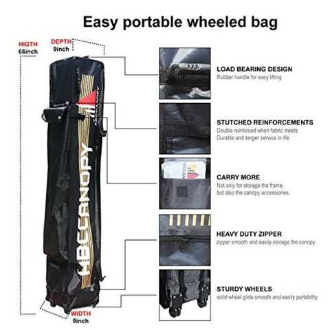 Set up in second: Super easy to set up with only 2 people. Roller bag for easy portability and light transportation. Heavy duty wheels glide smooth.