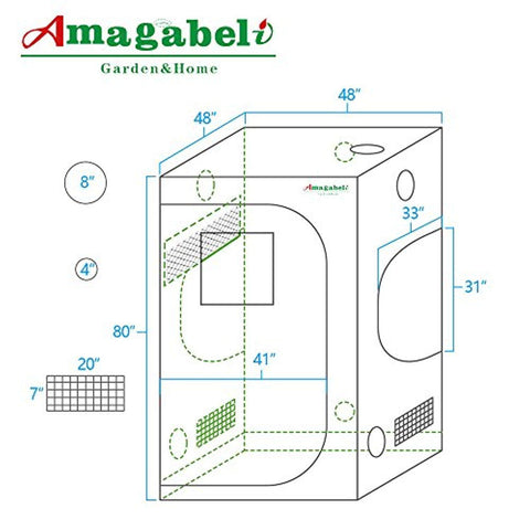 Amagabeli 48"x48"x80" Mylar Hydroponic Grow Tent for Indoor Plant Growing 4x4 with Observation Window Removable Floor Tray Reflective Adjustable Rope Hangers Tool Bag Room Box 4 by 4 Indoors Grow Kit