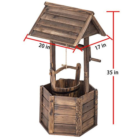 • ✿『Convenient Use』-Our Wooden Wishing Well Bucket is the perfect size for most balconies and balconies.The well is Garden Wooden Planter of solid fir wood that will keep this wooden bridge the season for many years.The fir Garden Wooden Planter and burn finish will give you the style you have been looking for in your garden.Wooden Planter Garden Patio Wishing Well Bucket Wooden Planter Garden patio Wooden Planter.
