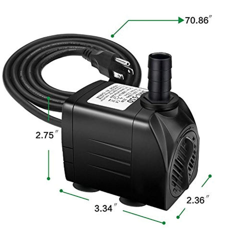 【Wide Application】-- This submersible pump attracts your fish or turtles a lot as it keeps circulating and aerating the water. Perfect for small to medium size aquarium, fountains, landscaping, spout, pond, water gardens and hydroponic systems, etc.