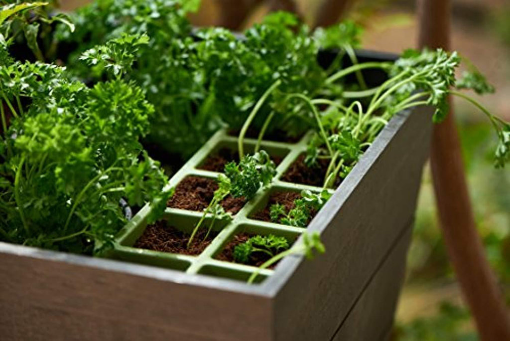 Keter Urban Bloomer 22.4 Gallon Resin Plastic Wood Look Elevated Raised Patio Garden Flower Planter Bed, Graphite