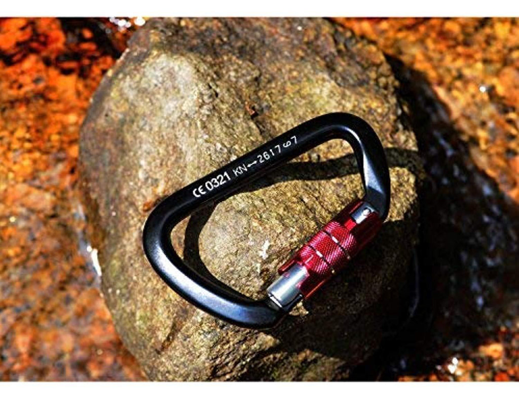 Large Opening Twist Lock Carabiner Set of 2 - D Shape Used for Rock and Mountain Climbing, Hot Forged Construction Tensile Strength at 26kN, 4.33in Height, Black