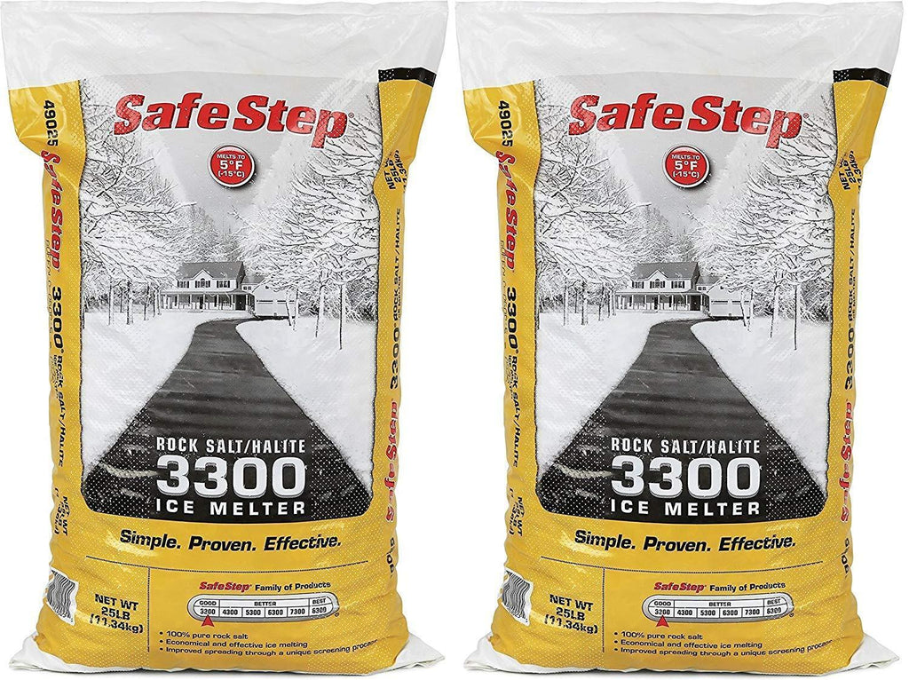 Safe Step Rock Salt/Halite Standard 3300 Ice Melter Non-Corrosive Safe for Concrete Sidewalks, Driveway Pavement- 25 Pound Bag