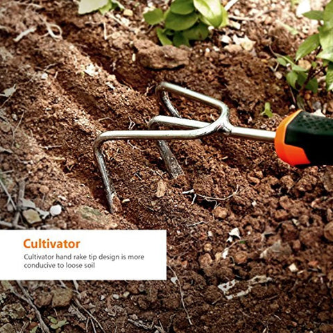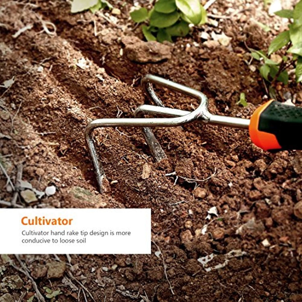 • ▲UNIQUE DESIGN & LENGTH GRADING MARK: Cultivator Hand Rake tip design, more conducive to loose soil; Transplant Trowel has a length grading mark, which is easier to transplant small plants and flowers