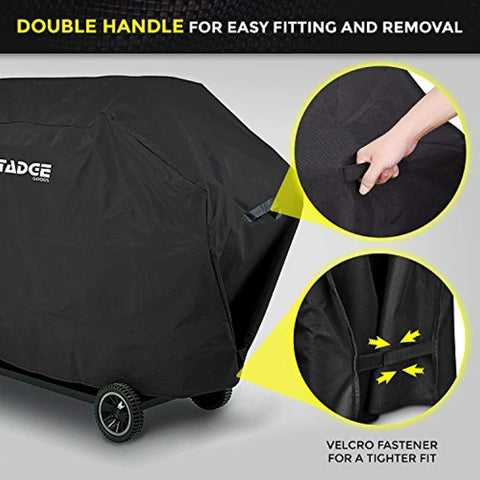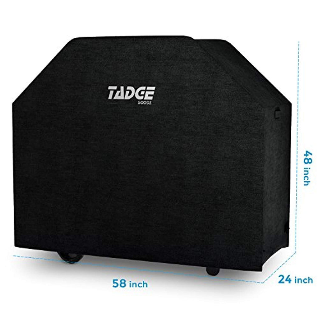 Tadge Goods BBQ Grill Cover w/Handles (58” Black) Waterproof, Heavy Duty | Large Universal Weber Charbroil Fit with Strap Fasteners | Gas, Charcoal, Electric