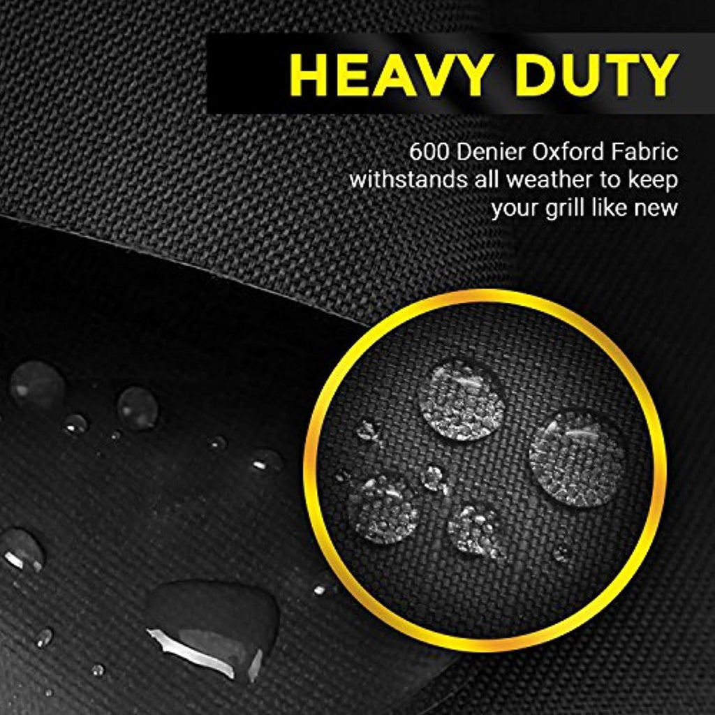 ALL-WEATHER DURABILITY – Crafted with 600D polyester oxford fabric and PVC coating this heavy duty BBQ grill cover is rip resistant, waterproof, sun-safe and weatherproof.