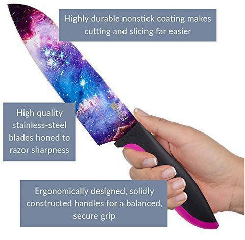 Cosmos Kitchen Knife Set in Gift Box - Unique Gifts For Men and For Women - 6-Piece Colorful Cooking Chef Knives Set