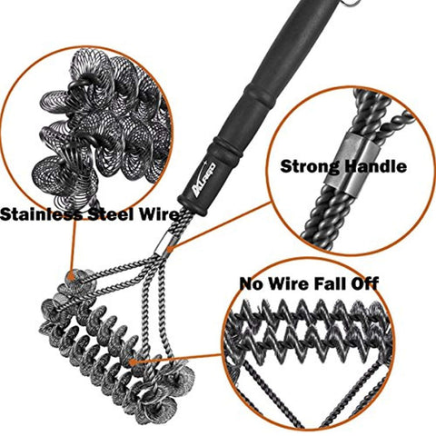 BRISTLE FREE GRILL BRUSH: For our customers' safety, We designed this-No sharp edges, and no need to worry about metal bristles falling out and this BBQ brush will not melt like nylon grill brushes.