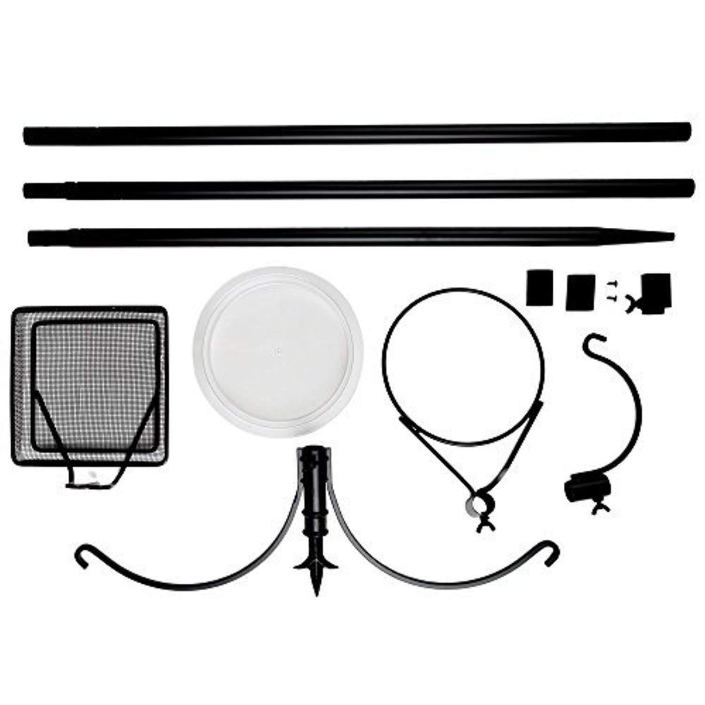 PREMIUM DESIGN: Rust resistant, sturdy steel pole stands 91 inches tall and 22 inches wide. Easily adjust components to any desired location by loosening and tightening wing nuts by hand. No tools required! Forked base prong adds stability and permits easy placement. Just step down to plant. Mesh tray and water bowl detach for easy cleaning. *BIRD FEEDERS ARE SOLD SEPARATELY*