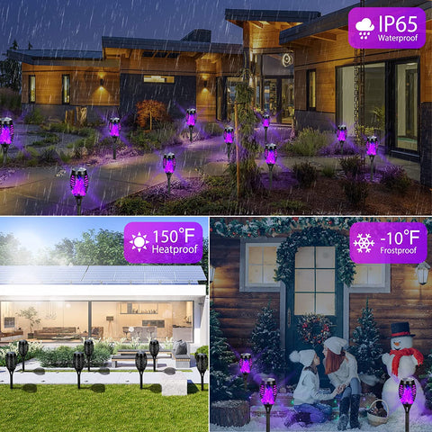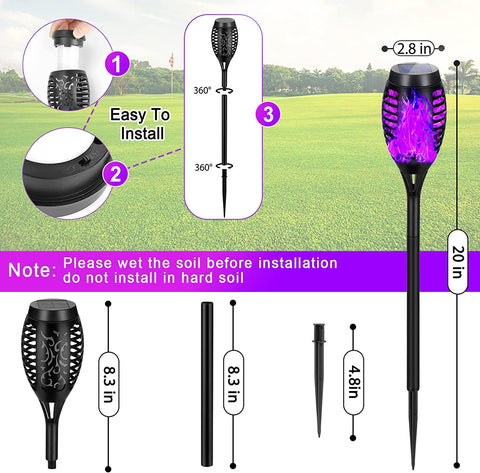 âïžăIP65 WATERPROOF & EASY INSTALLATIONăThe flickering solar lights outdoor is made of high-quality ABS material, which makes it IP65 waterproof and durable, and can withstand severe weather such as heavy rain and heavy snow. And no wires to install, solar garden lights can be installed in just 8 seconds, they'll add scenery to your summer evenings, or embellish your rain and snow with a warm sparkle to make your home the envy of your neighbors on nights in all seasons.