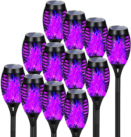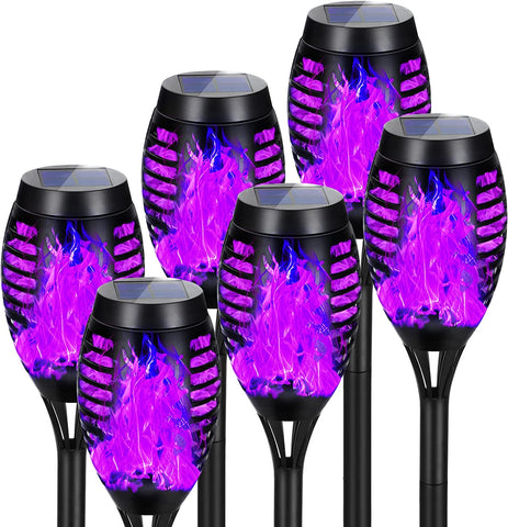 Liveasily Upgraded Solar Lights Outdoor Waterproof Purple, 6 Pack Solar Torch Light with Flickering Flame, Mini Solar Outdoor Lights Solar Landscape Lights for Garden Porch Yard Pathway Halloween Decoration