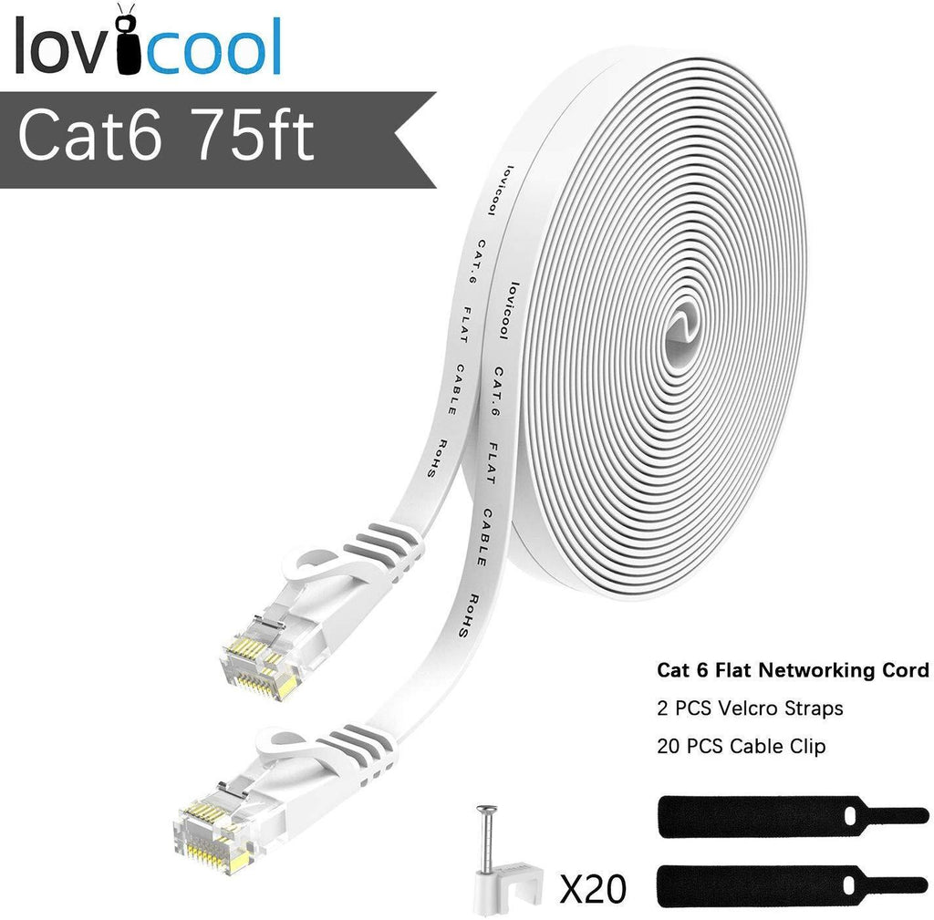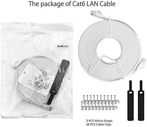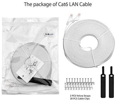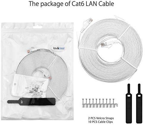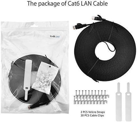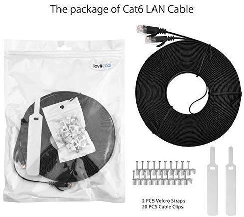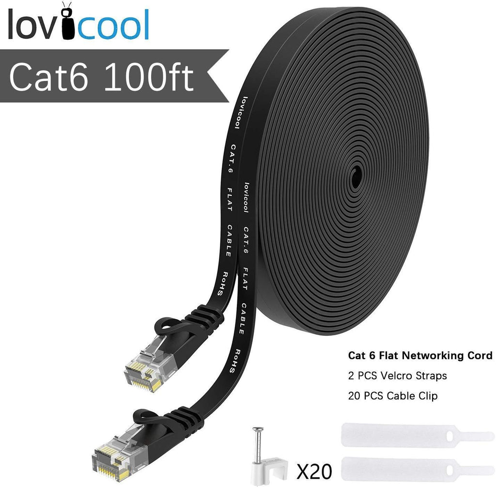 Lovicool Cat 6 Ethernet Patch Cable 100 ft Black, 4-Pair UTP Flat Networking Patch LAN Cable Ethernet Cords Network Wire Speed up to 250MHz with RJ45 Connectors 30m