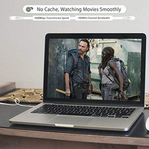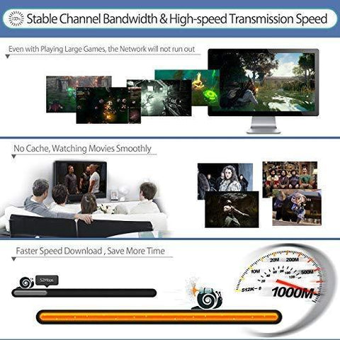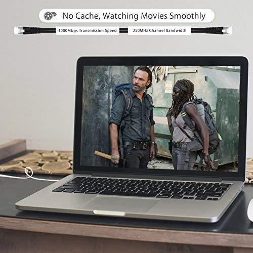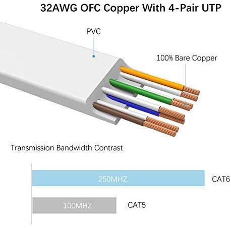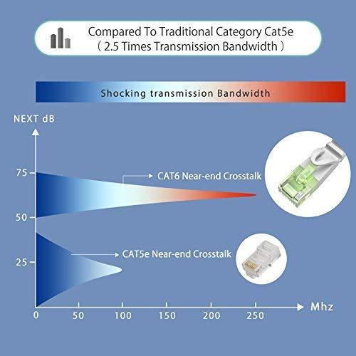 Cat 6 Cable Transmits data at speeds up to 1,000 Mbps (or to 1 Gigabit per second) and support up to 250 MHz Bandwidth, It can provide higher-speed, stabile data transfer for APPs, Cloud storage, online gaming, Video chatting and online video show.