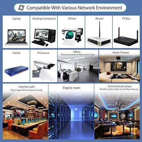 Cat 6 Ethernet Cable provides universal connectivity for LAN network components such as PCs, computer servers, printers, routers, switch boxes, network media players, NAS, VoIP phones, POE devices, and more