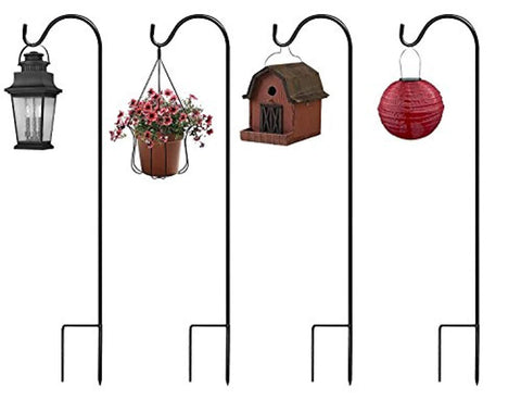 SHEPHERD’S HOOKS (Set of 4) – Ideal for hanging outdoor décor, plants, lights, lanterns, flower baskets, bird feeders, and more