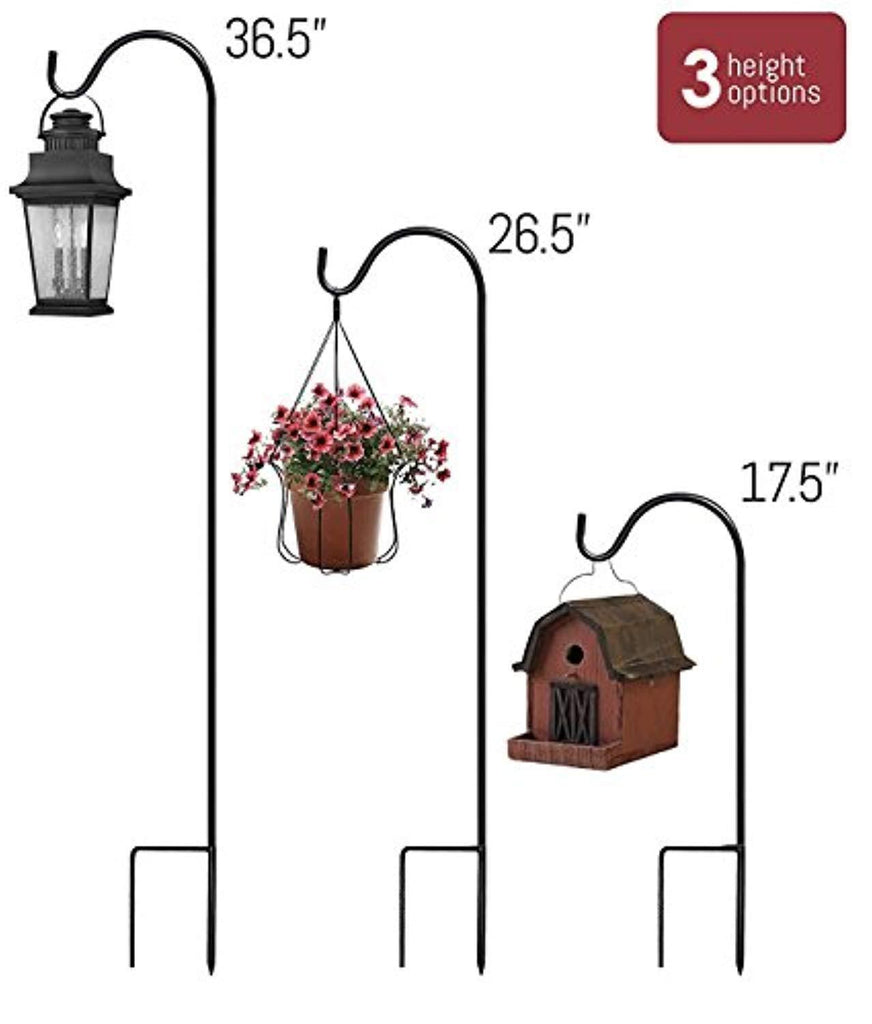 PACKAGE INCLUDES –Includes shepherd’s hook, extenders, and stakes